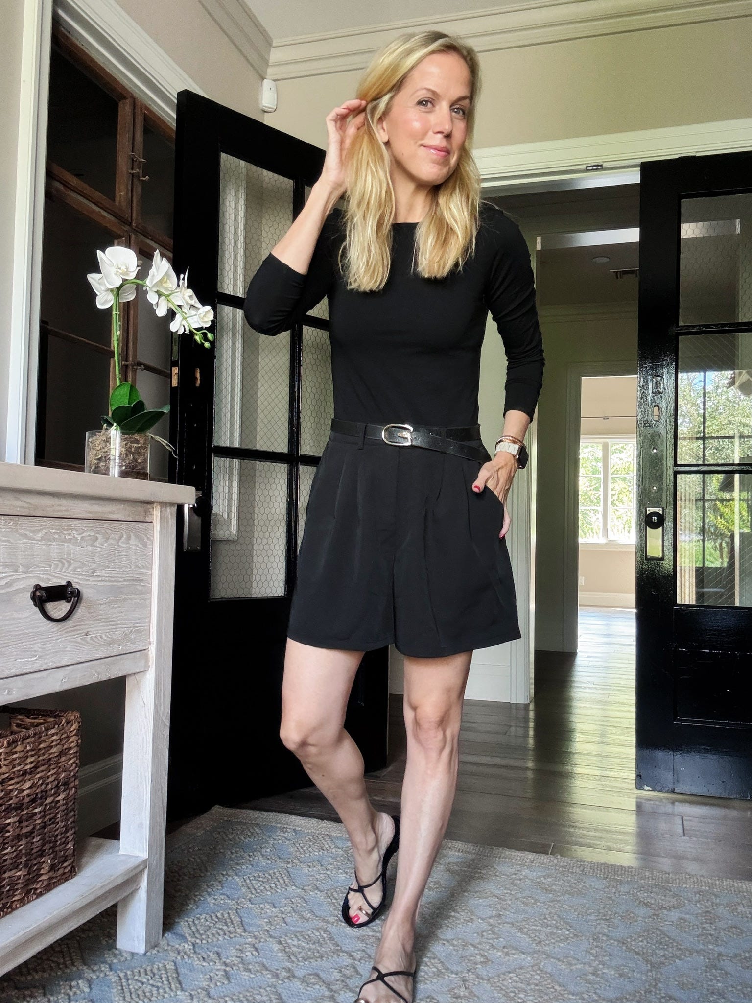 We’re constantly inspired by Andrea’s Lookbook. She recently featured longer black shorts from Amazon and Gretchen had to try them. We vote yes for a polished fall look. Gretchen completed the outfit with a favorite bodysuit from Old Navy. Bodysuit and shorts linked here.